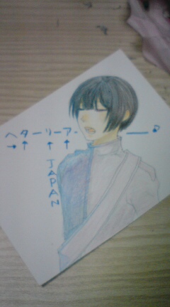 おこわ君について。友人と担任へのサプライズプレゼントということで写真貼ったりなんせブックレットにして渡すのですが、その一ページを作ってました。そのときふと思いつき暴走。まあね、どこのキャラクタだよっていう出来具合☆(なぞ)