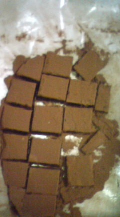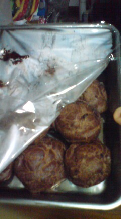 写真ではわかりませんが、小麦粉を混ぜたときに温度が冷えてしまったためうまくふくらまなかった(オーブン入れたときに失敗したって思った)ココア生地のシュークリームと、ラム酒好きすぎていれすぎた生チョコです。